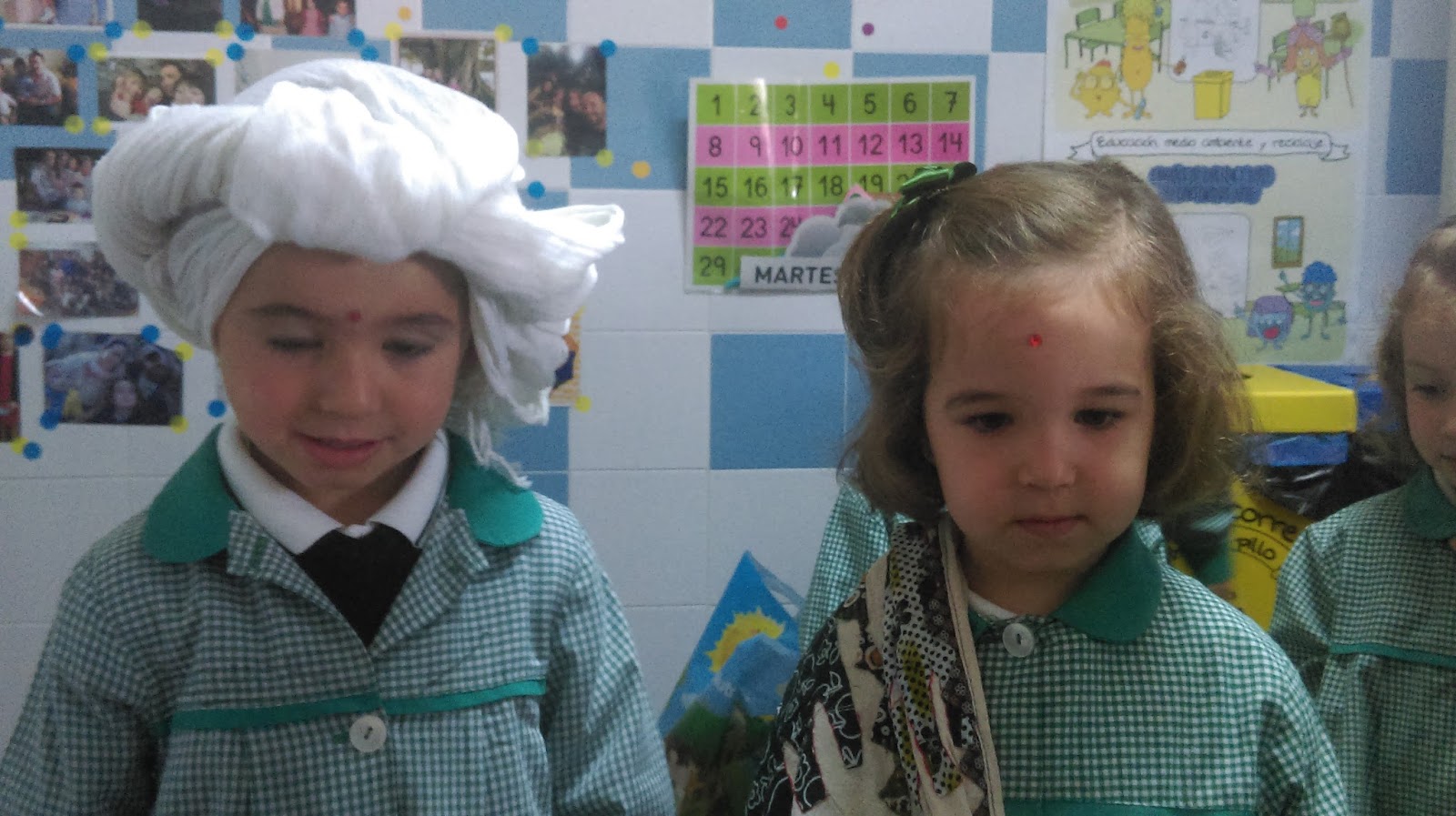 En el marco de nuestro proyecto LA VUELTA AL MUNDO las dos clases de tres años hemos recibido la visita de los padres de una de nuestras compañeras que viajaron a la India y han querido compartir con nosotros muchas cosas sobre su viaje y sobre las costumbres de aquel país.